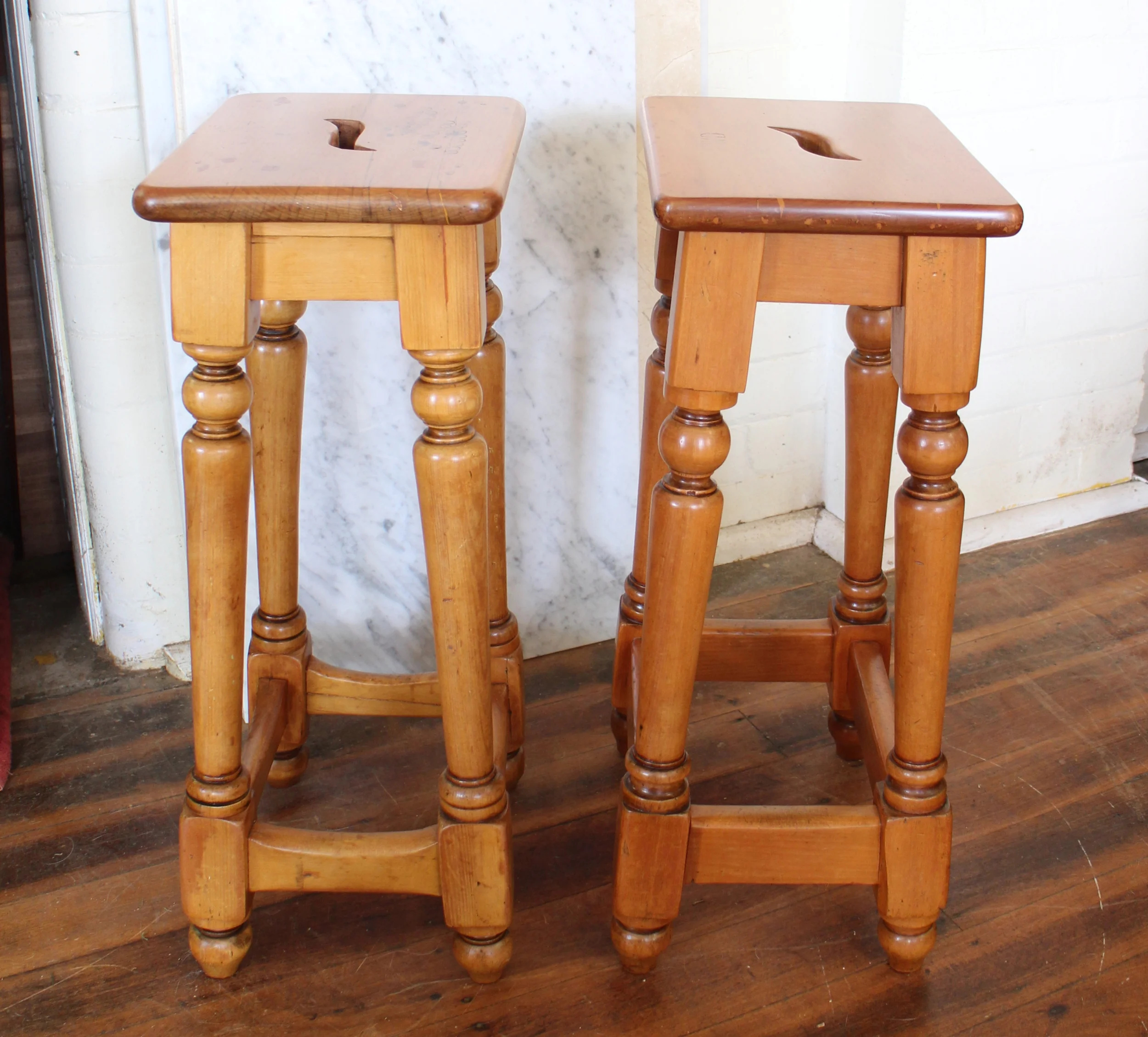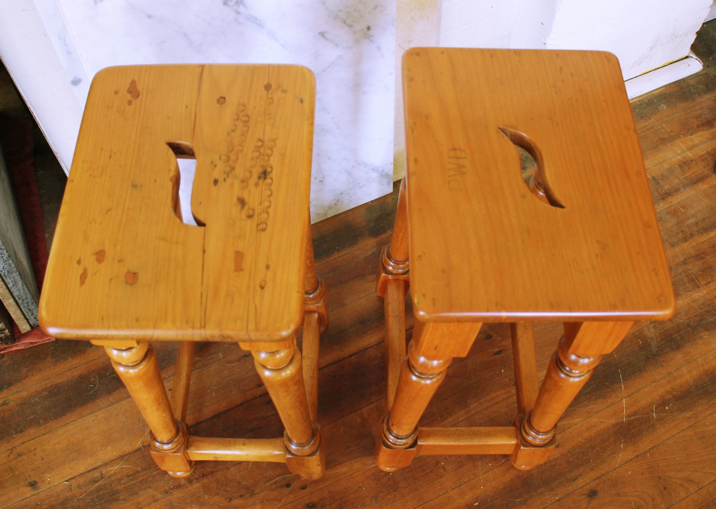 Two hard to find Victorian Railway Stools ,both Kauri, dating to the 1880's.